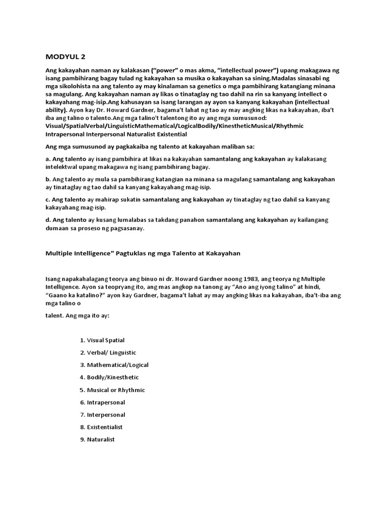 Modyul 2 Talento Mo Tuklasin Kilalanin At Paunlarin Ppt Download