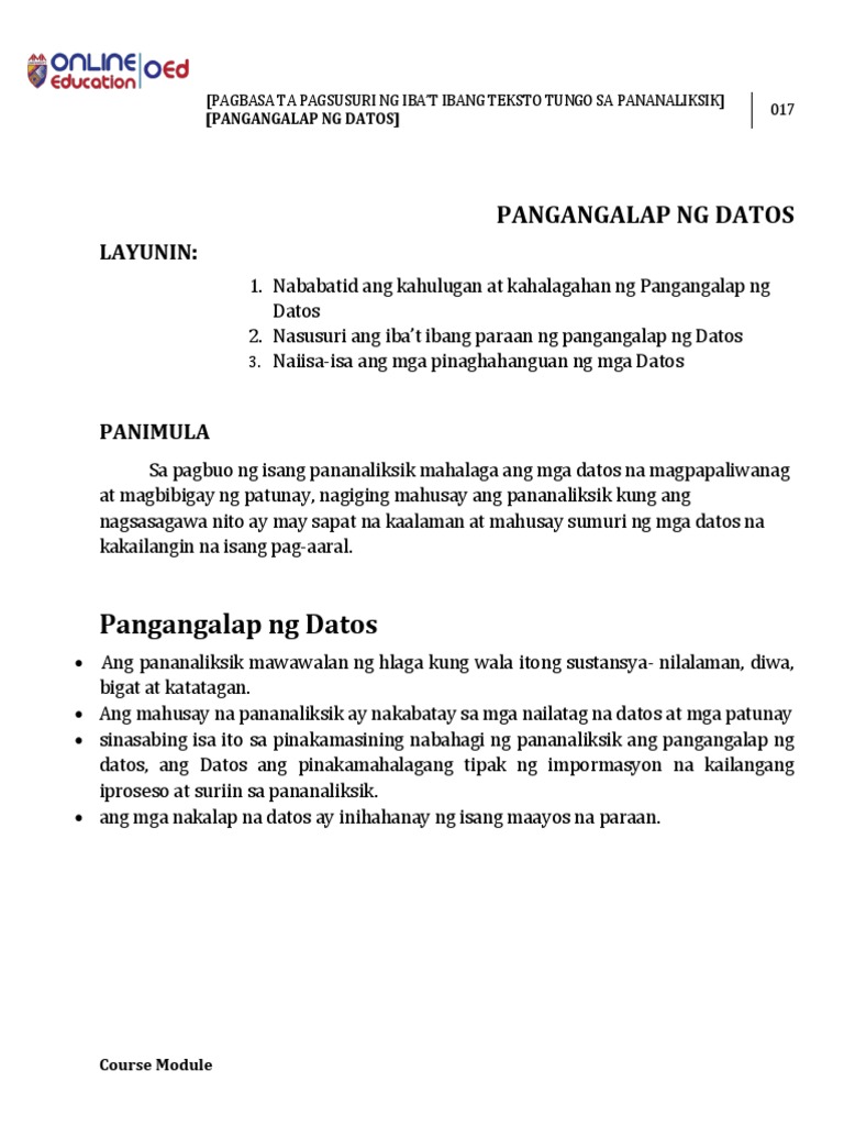 Lesson 18 Pangangalap Ng Datos