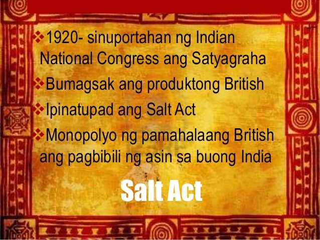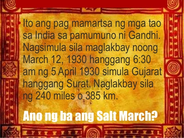 Were in the know. Unang una sa lahat ay ang tamang ugali. 3122018 ANG SALT MARCH NI GHANDI Noong 1930 si Ghandi ay naglunsad ng isang dedemonstrasyon upang ipadama ang pagsuway sa Salt Act ng mga Briton.