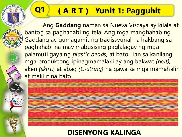PAGLALAHAD Ang mga pangkat-etniko mula sa Hilagang Luzon hanggang Sulu at sa iba pang bahagi ng Mindanao ay may kani-kaniyang katutubong sining o motif na nagtataglay ng ibat.