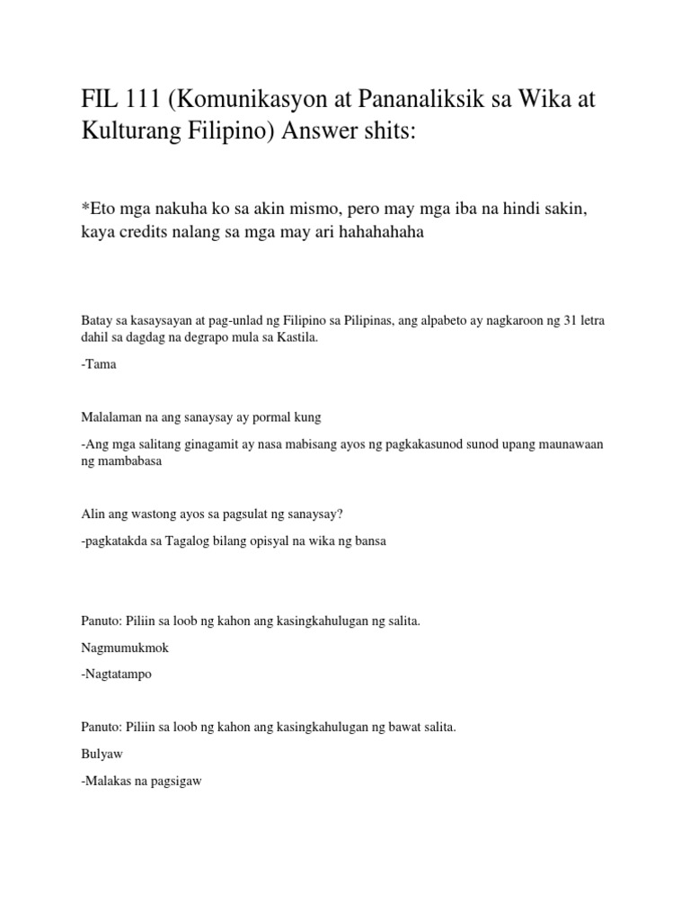 12fili 111 Week 1 19 1 Grade 12 1st Quarter S O U R C E Fili 111 1st Semester By Yoko Mishima Tukuyin Ang Pangatnig Na Ginamit Sa Pangungusap Course Hero
