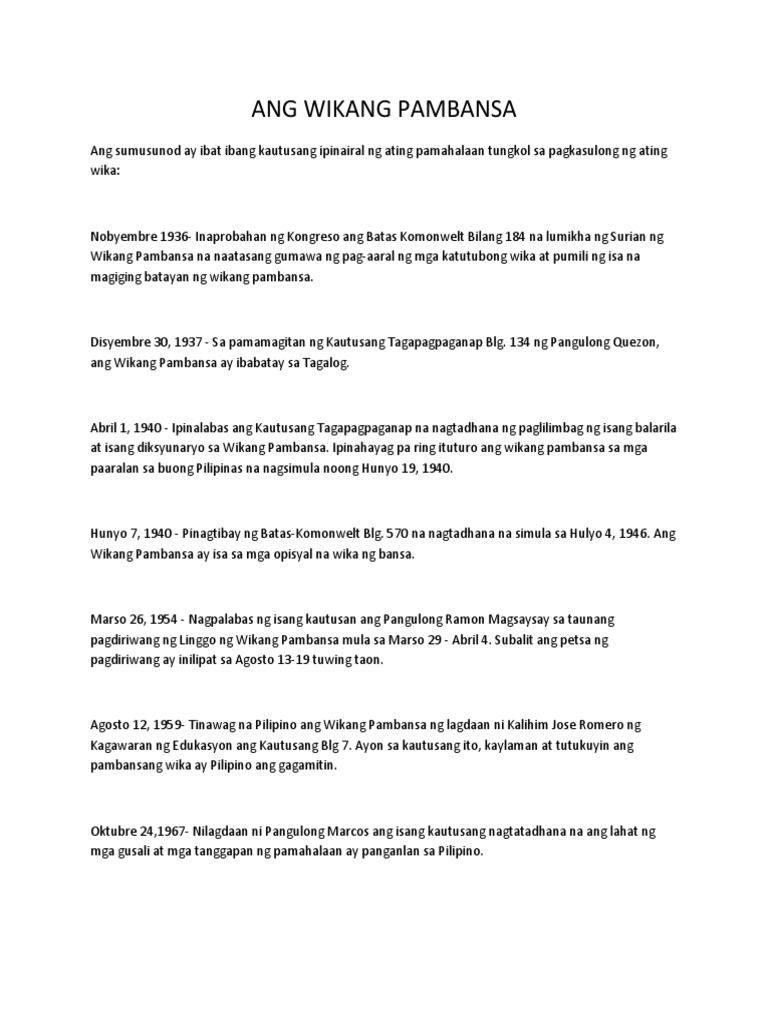 Naging mahalaga ang mga ito para sa lahat ng mga Pilipino dahil sa may kaugnayan ang mga kapistahang ito sa kasaysayan ng Pilipinas at ng lipunang Pilipino. Mga salita na nakapaloob sa Wikang Pambansa Wikang Opisyal at Wikang Panturo a. Ang Filipino ay itinalaga din kasama ang Ingles bilang isang.